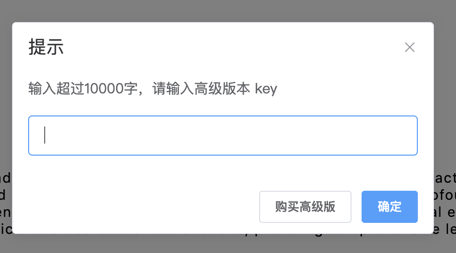 同时在输入 key 的弹框中放入购买的入口,这就算产品的改造工作基本完成了。