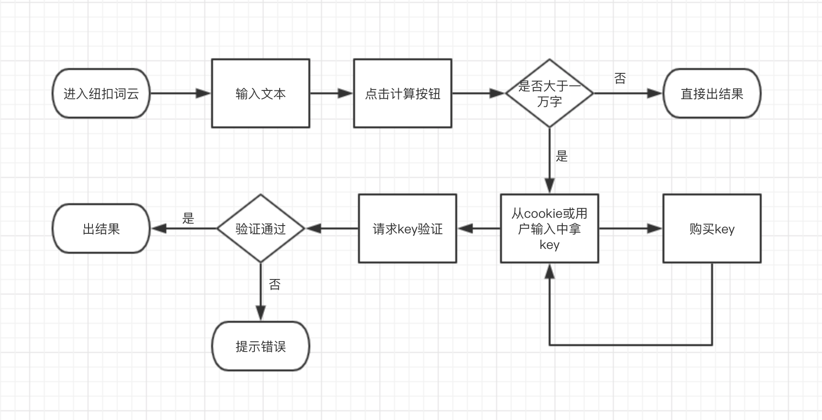 无论是从 cookie 中拿到的 key,或者是从用户输入中拿到的 key,都调用上面提到的接口去验证是否有效,如果有效,则继续执行词云图生成的逻辑,并把 key 存在 cookie 中,如果无效,则提示错误。